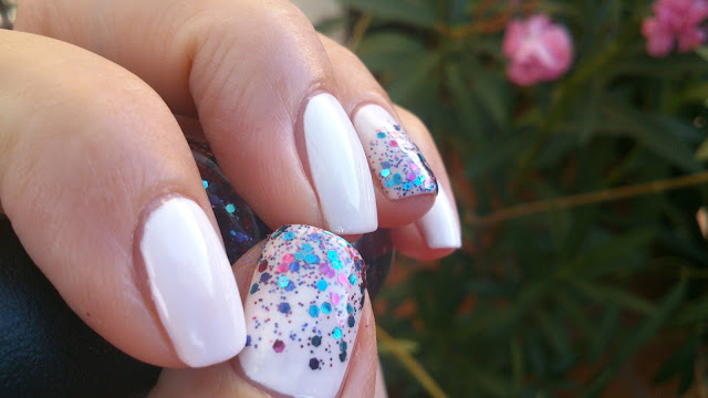 Tak mi się spodobał ten mani, że przechodziłam w nim ponad dwa dni ( dla mnie to już duże osiągnięcie). Wszystko wyglądało nienagannie, ale potrzebowałam już zmiany. Gdy mam ochotę na trochę błysku na paznokciach, sięgam właśnie po ten brokat, bo OPI, Polka.com nadaje się do tego wyśmienicie. Myślę, że jeszcze nie raz uda mi się pokazać jej możliwości.